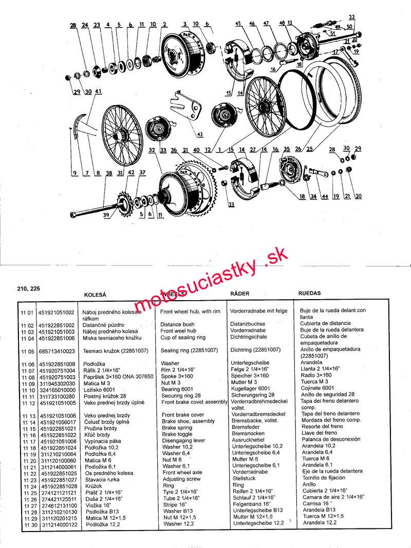 Úvod » Babetta » Babetta 210,225,Stella » kolesa , brzdy » A: schema kolesa - Obrázok