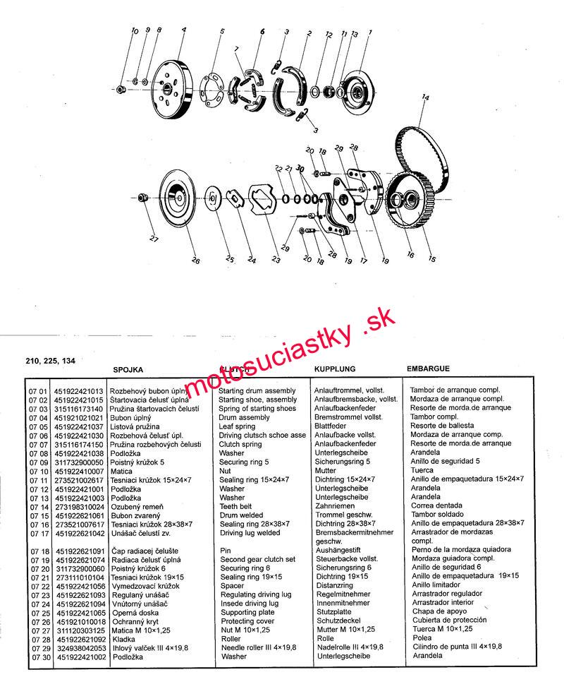 Úvod » Babetta » Babetta 210,225,Stella » motor , prevodovka , spojka » A: schema spojky - Obrázok