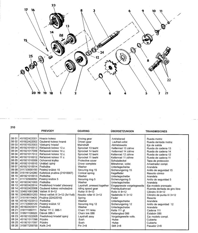 Úvod » Babetta » Babetta 210,225,Stella » motor , prevodovka , spojka » prevodovka
